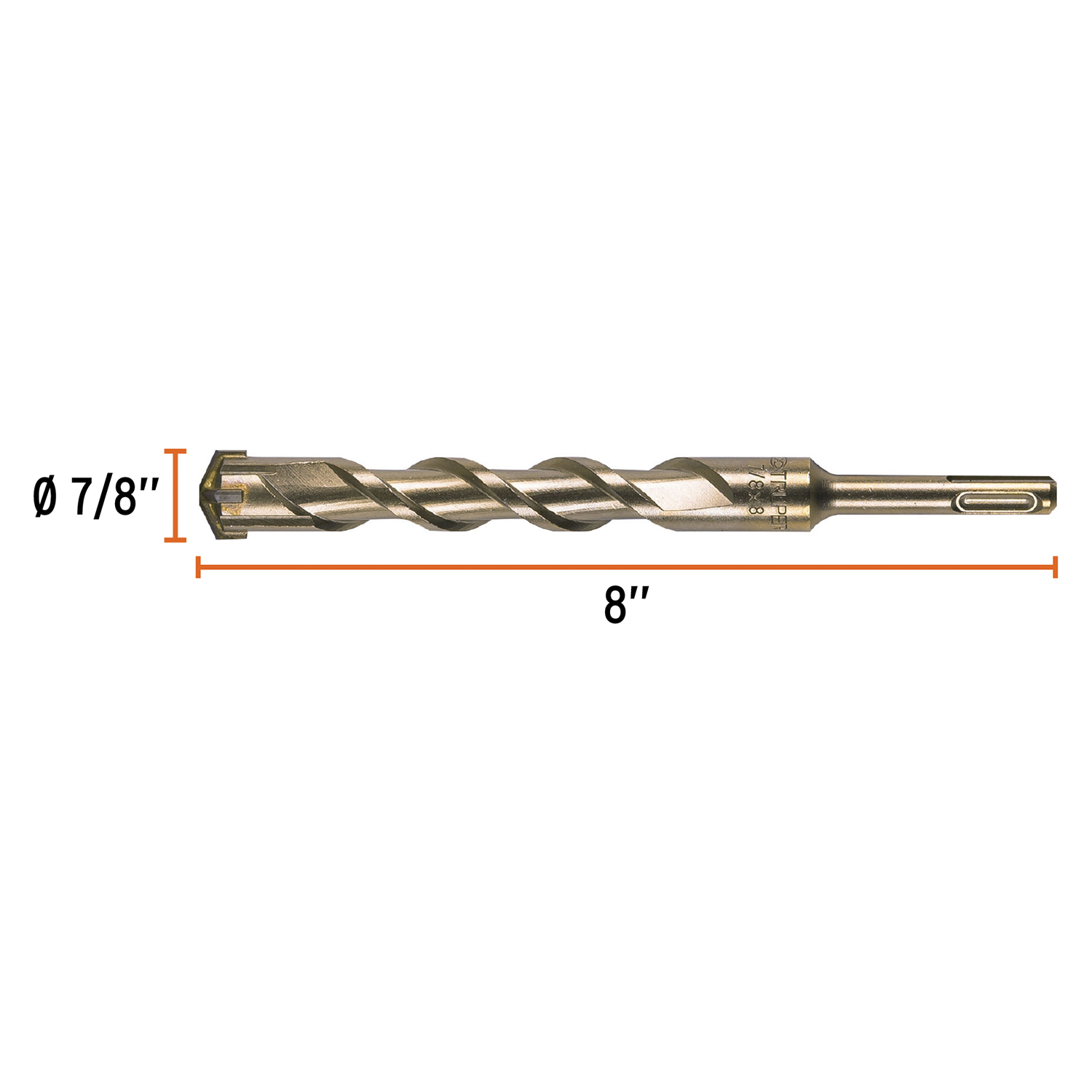 Código: 11268 Clave: BS-7/8X8 Uso: Profesional Diámetro: 7/8" (22.23mm) Largo Total: 8" (203.2mm) Ver más modelos de brocas SDS-Plus. Más información.