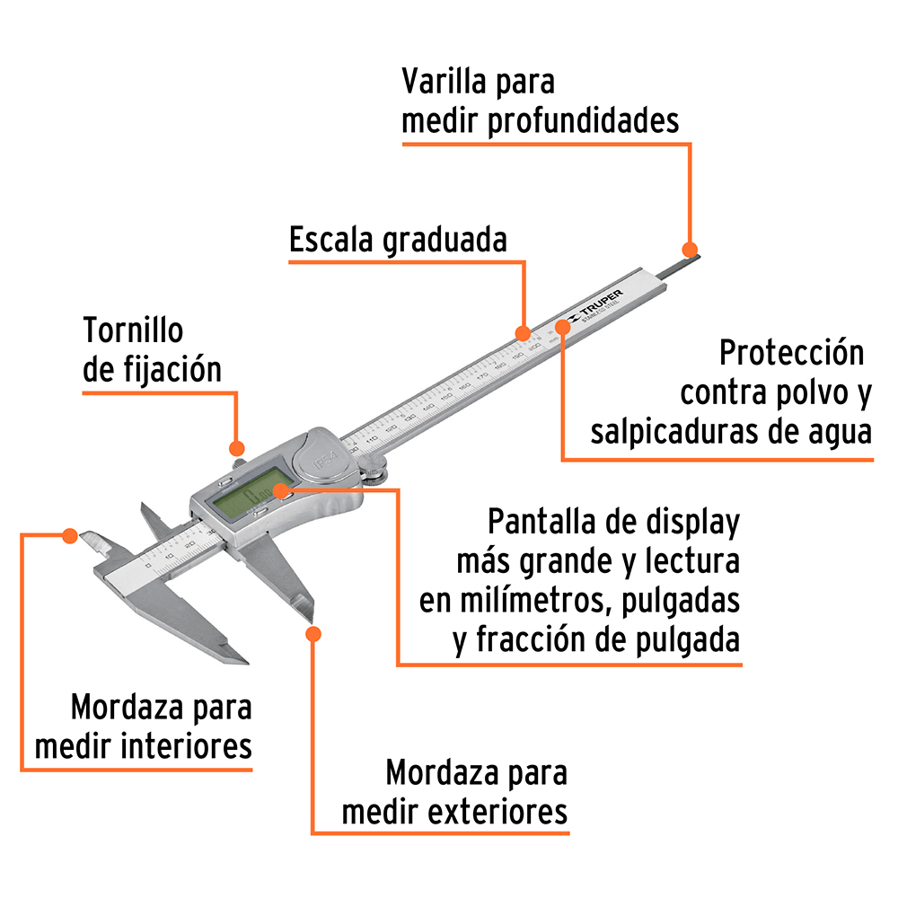 Modelo: CALDI-6MP Código: 14388 Uso: Profesional Tipo: Digital Capacidad mínima / máxima: (0.0005" / 0.01 mm) / (6" / 150 mm) Ver más Modelos de Calibradores Vernier. Más Información.