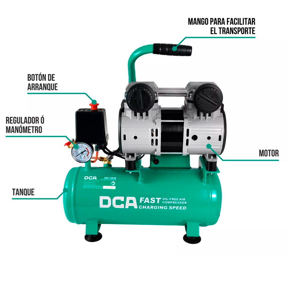 Modelo: AQE1100/8L Uso: Industrial Potencia: 1100 W Capacidad Tanque: 8 Litros Presión Trabajo: 8 Bares Libre de Aceite Carga Rápida Silenciosa Ver mas modelos de Compresoras Silenciosas. Más información.