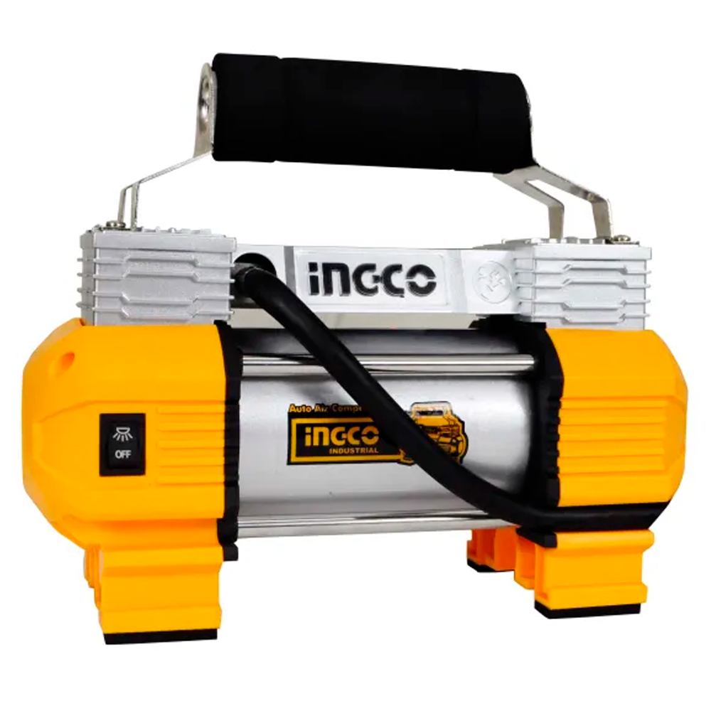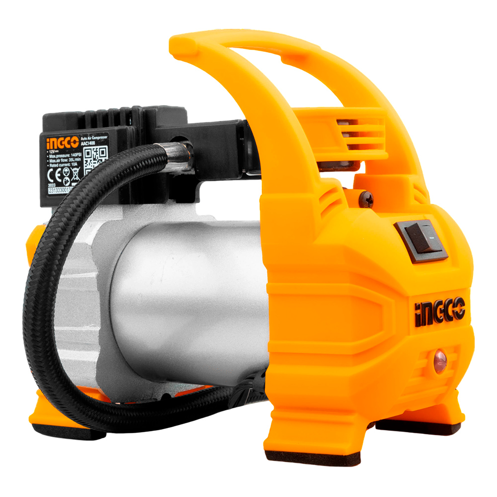 Modelo: AAC1408 Tipo: Compresor de aire portátil para vehículo Voltaje / Alimentación: DC 12 V Corriente nominal: 10 A Presión máxima: 140 PSI (10 bar) Flujo de aire: 35 L/min