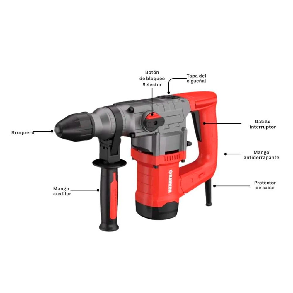Modelo: RH105001 Uso: Industrial Sistema de encastre: SDS-Plus Potencia: 1050 W Energía de impacto: 4.5 J Velocidad: 900 RPM Golpes por minuto: 4300 GPM