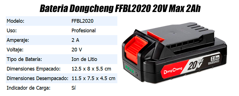 - Compatible con todas las herramientas eléctricas DongCheng 20V Max Litio-Ion familia de herramientas.