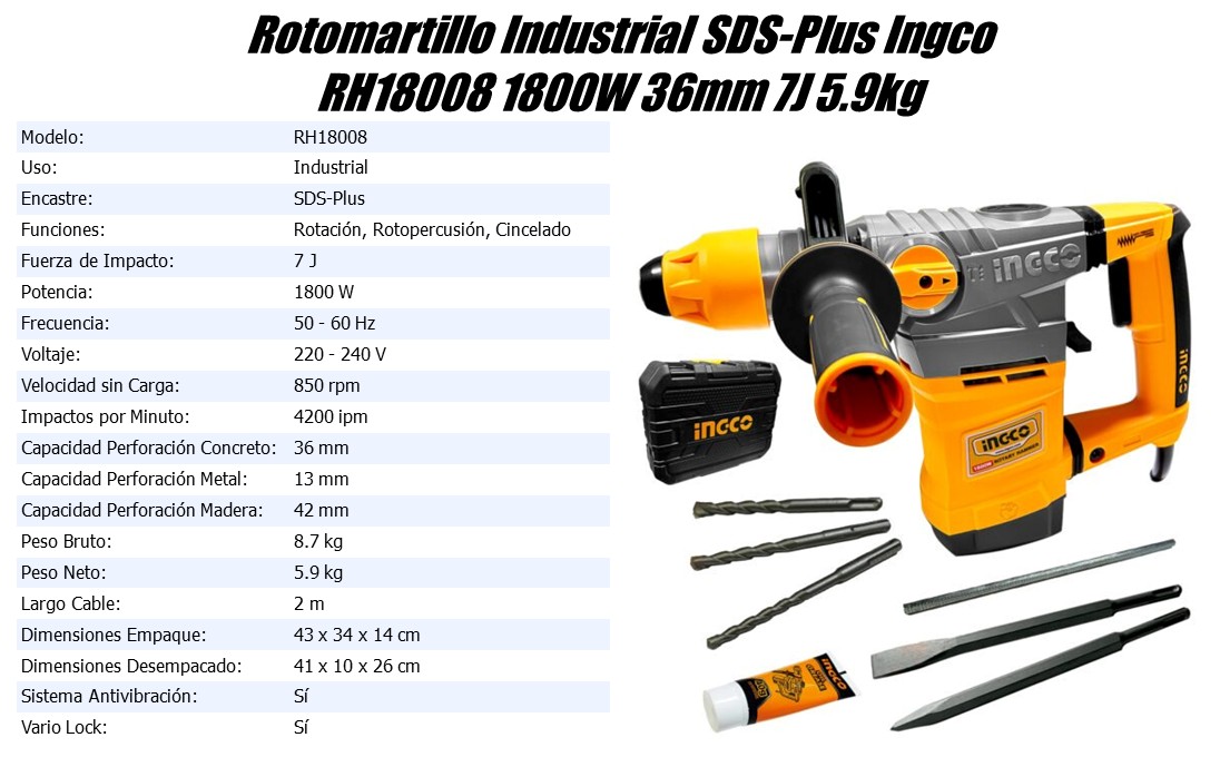 | Capacidad Perforaci贸n Concreto: | 36 mm |