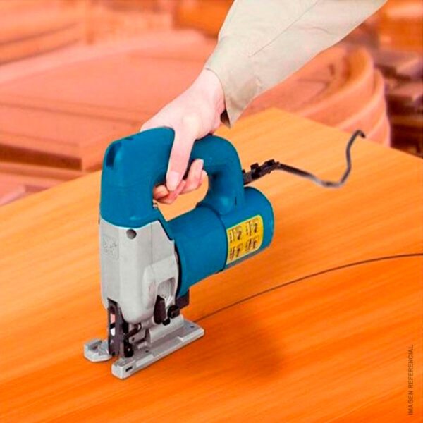 Los usos de las sierra caladora son para cortar curvas, ocupar con plantillas de diseño, en madera, enchapado, aglomerado, melamina, pvc, vidrio sintético, cartón, cuero, aluminio, zinc, poliestireno, corcho, fibrocemento, acero, etc.