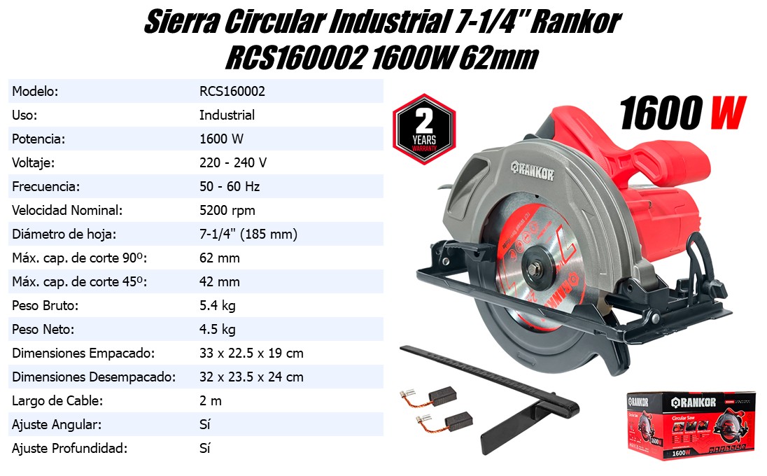 | Diámetro de hoja: | 7-1/4" (185 mm) |